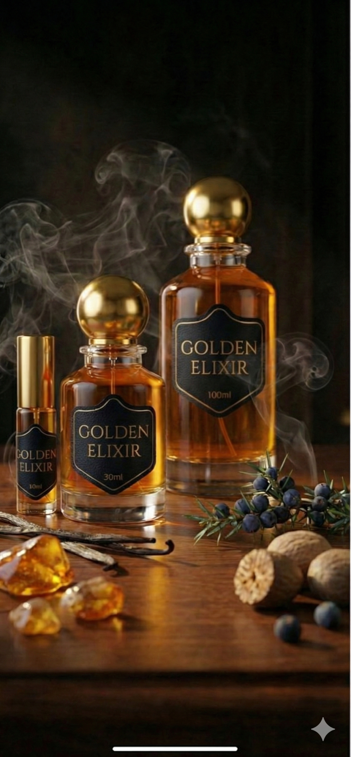 The fragrance opens with a luminous blend of soft spices and gentle citrus warmth, creating an inviting golden glow. At the heart, smooth florals and delicate amber notes unfold harmoniously, adding richness and depth without heaviness. The base settles into a velvety trail of creamy woods, soft musk, and warm resins, leaving a sensual and long-lasting impression.